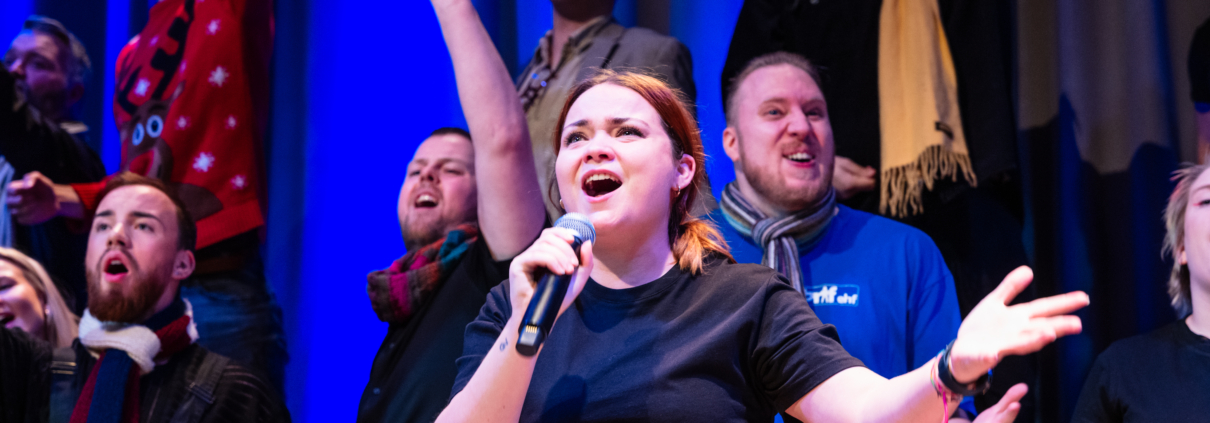 Ég grýlukerti brúka sem hljóðnema við söng